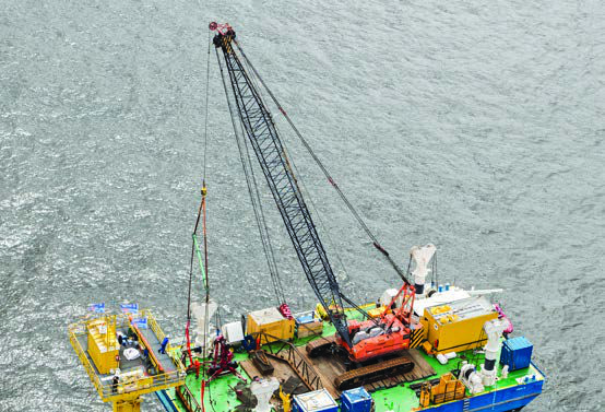 The Hitachi KH 500 , is a heavy-duty lattice boom crawler crane , well known for its offshore and onshore lifting capacity .