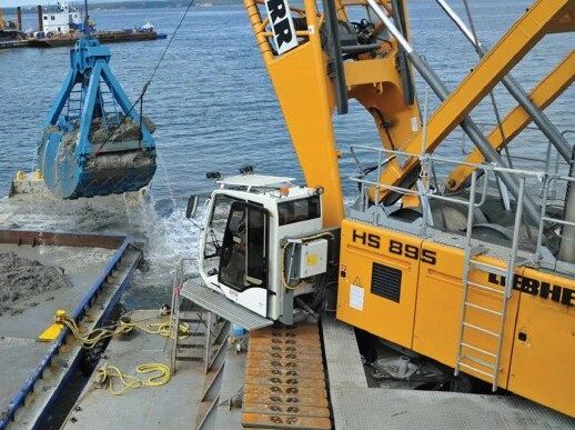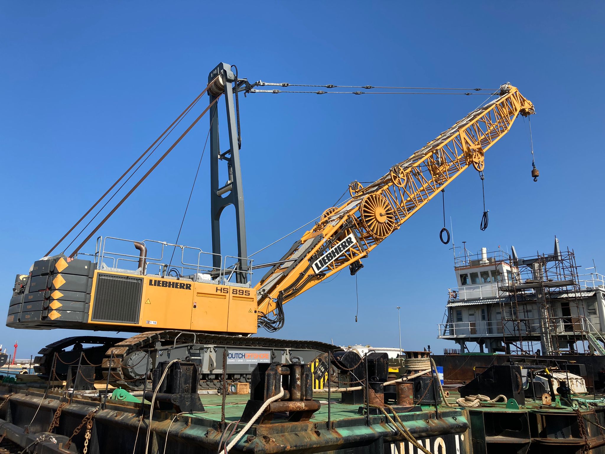 Liebherr 895 HD, is a heavy-duty crawler crane, designed for offshore and demanding lifting operations with high stability and efficient hydraulic systems.