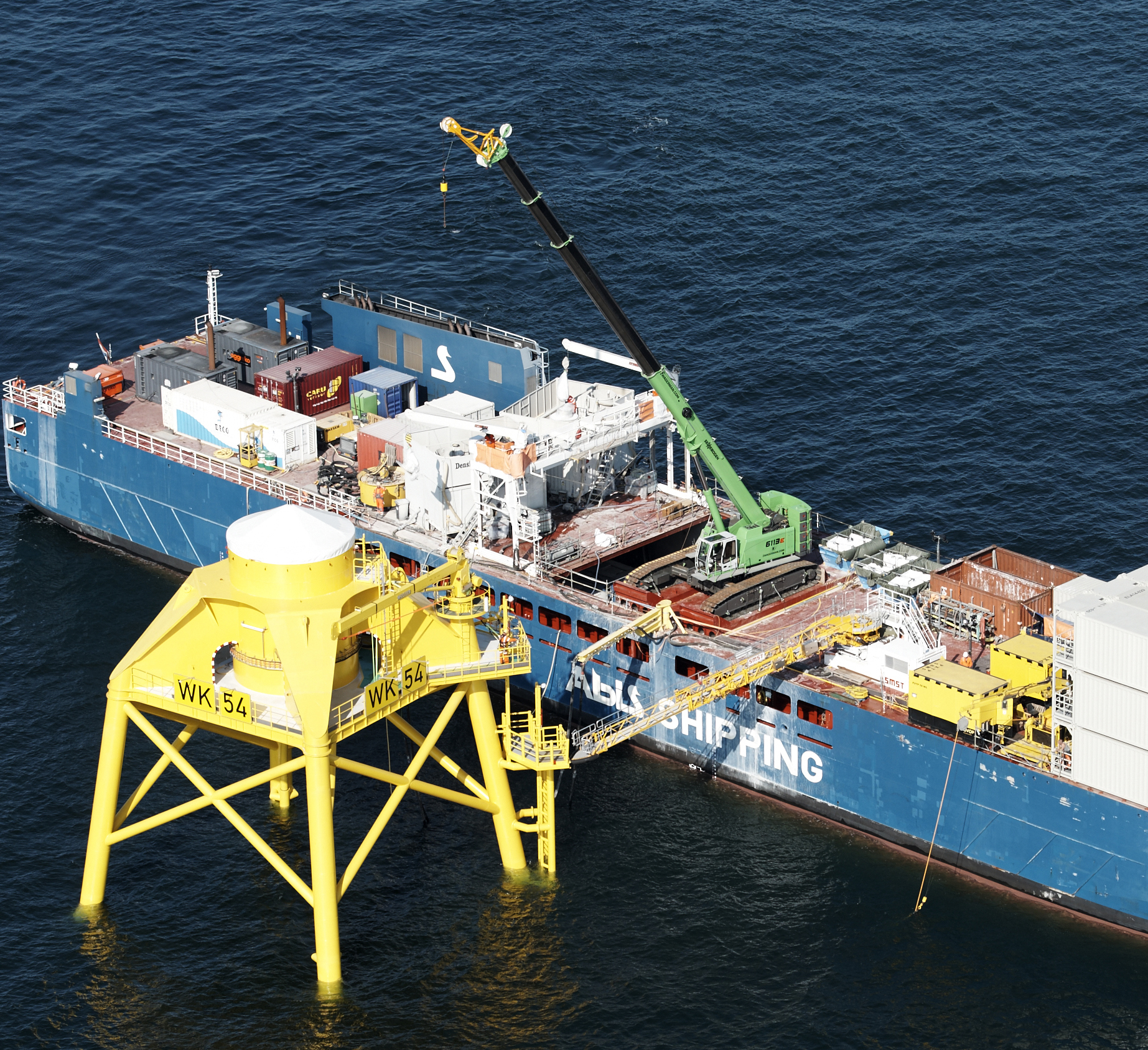 During 2016/2017 we provided for  Amasus and Boskalis a 120 tons telescopic crawler crane on board Eems D class DP2 vessel for grouting operation for  Wikinger/Boskalis Offshore Windforce project.
