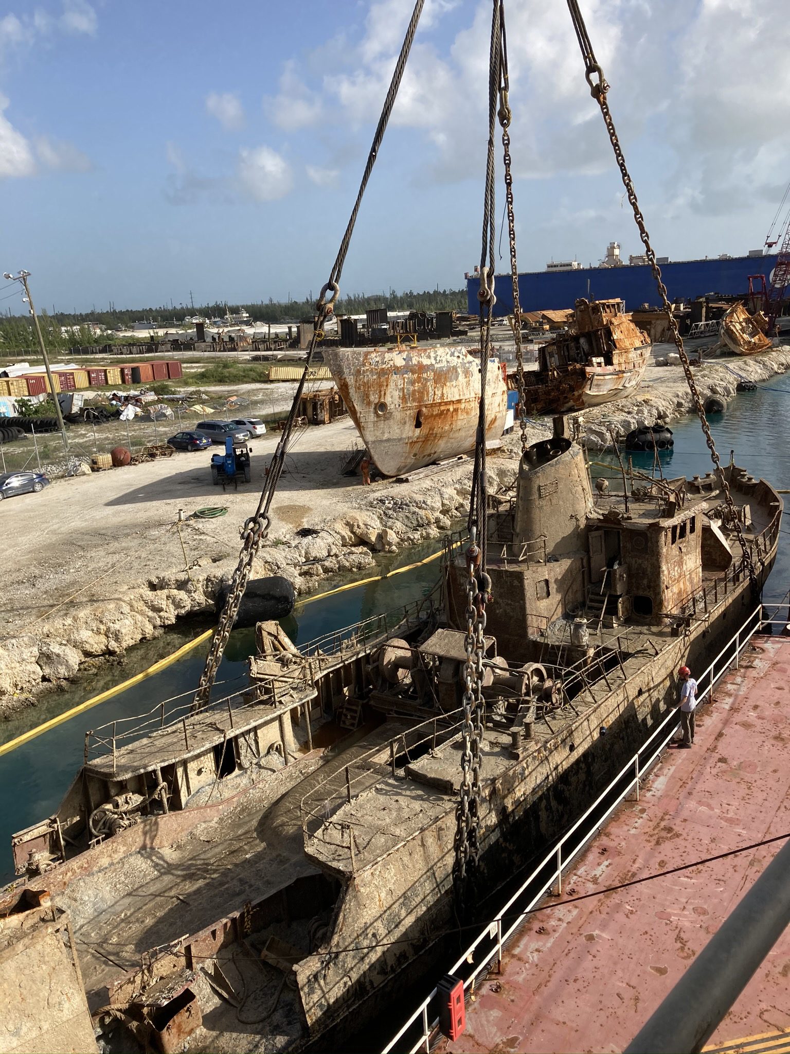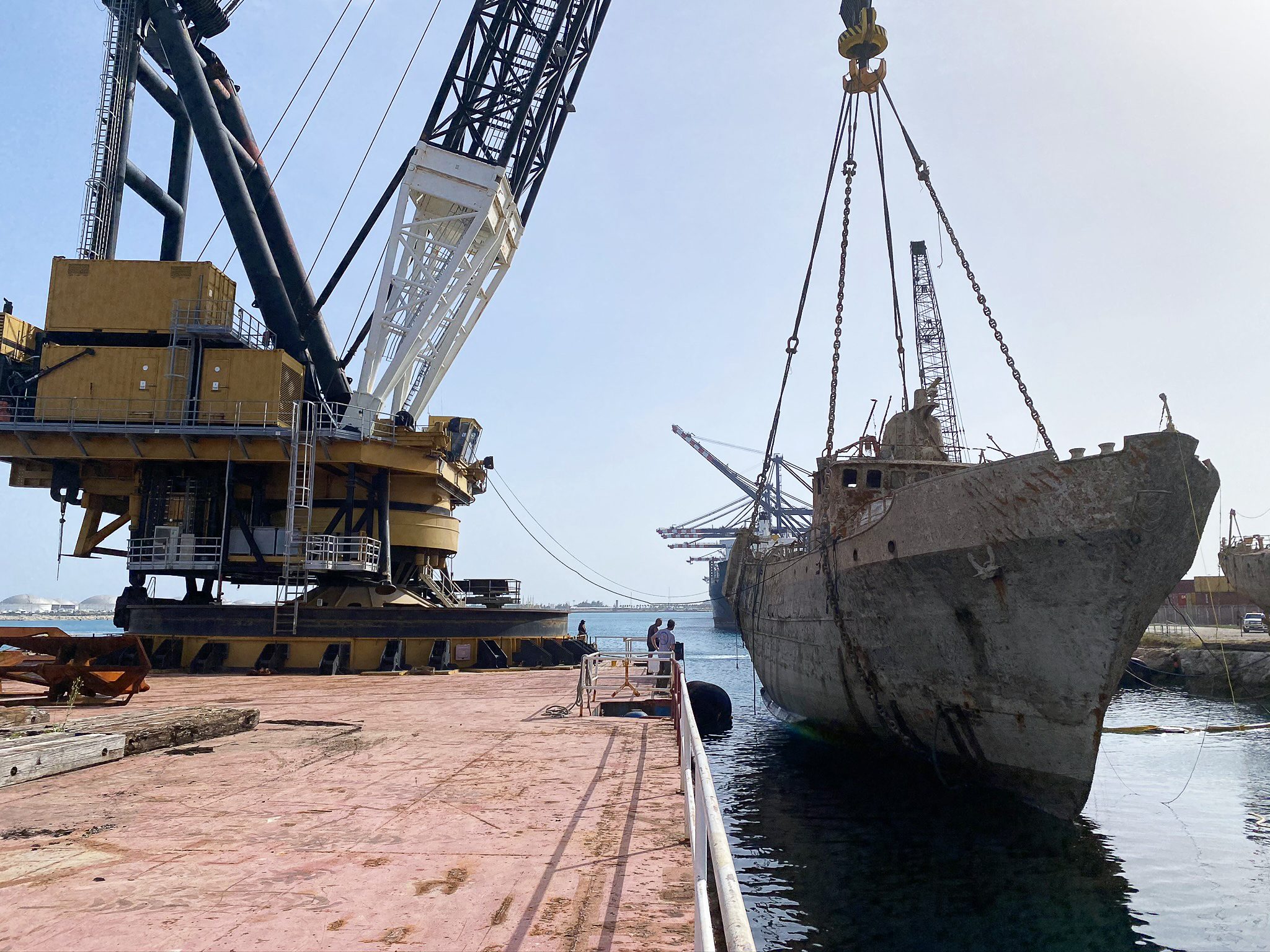 During the corona pandemic, a team of our specialists were able to travel to the Grand Bahama and remove the wrecks of three sunken tugs. The heaviest tug was almost a 1000 ton!