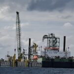 300 ton HD and 120 ton telescopic crane on cable lay barge