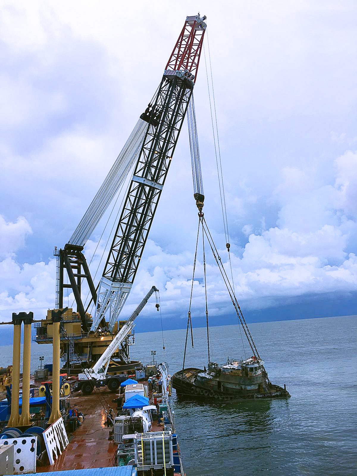 The Conquest was chartered by Resolve Marine Group for the salvage. Special care was taken as there was a casualty during the sinking of the vessel.
